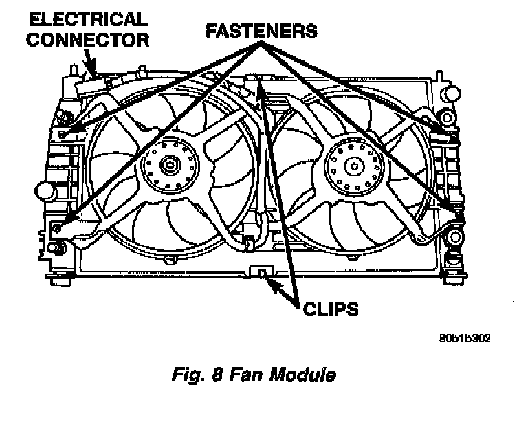 The dual fan module is a combination of 2 fans mounted in an one piece shroud which operate at two speeds and are simultaneously activated. The dual fan system improves engine cooling and air conditioning performance in hot weather and severe driving conditions, while reducing fan noise and power consumption. Attempts to reduce high temperature gauge reading by increasing engine speed, can increase high temperature.