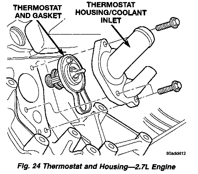 2. Install thermostat and gasket into the thermostat housing.