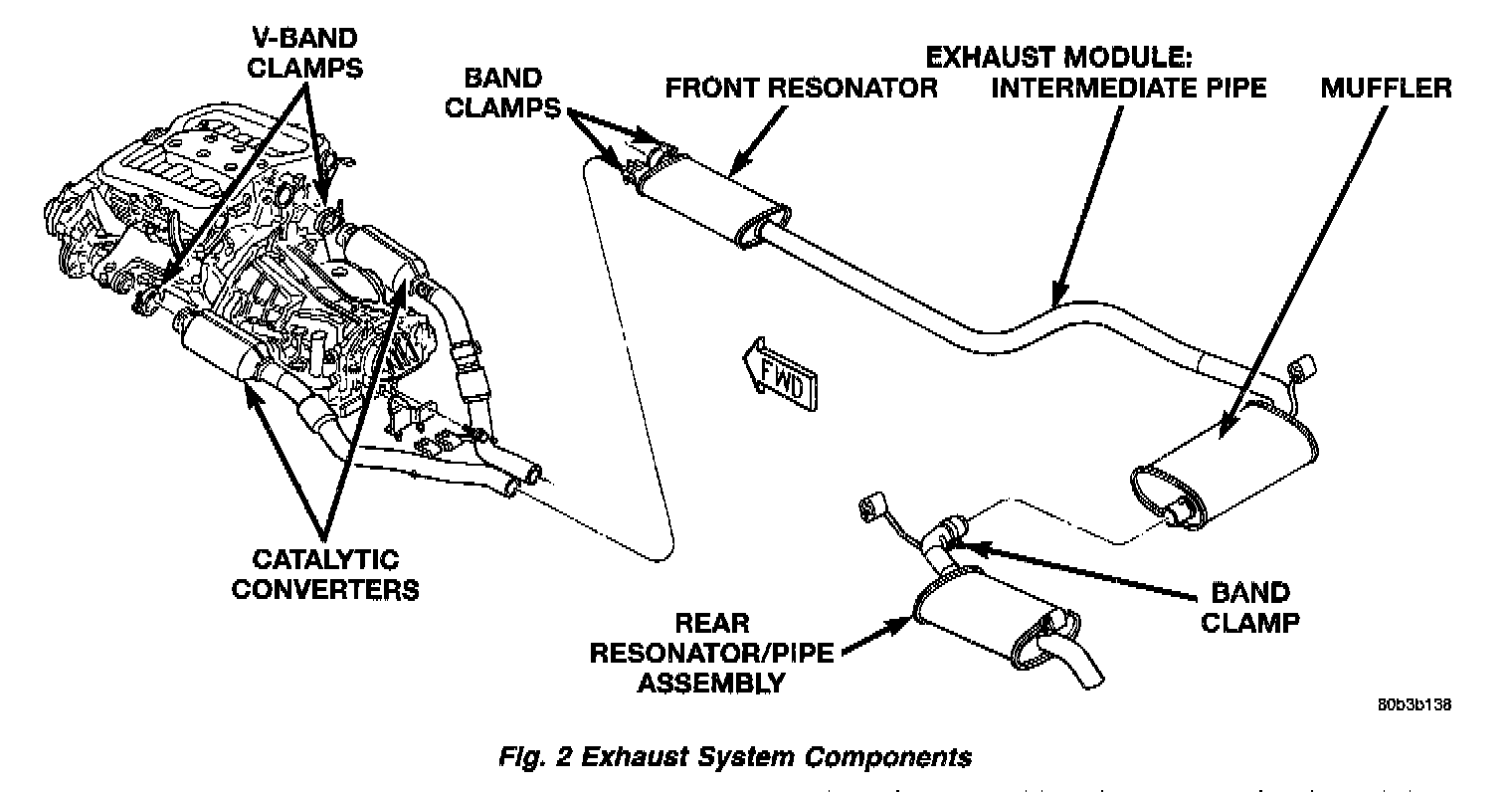 NOTE: When replacement is required on any component of the exhaust system, it is most important that original equipment parts be used for the following reasons: