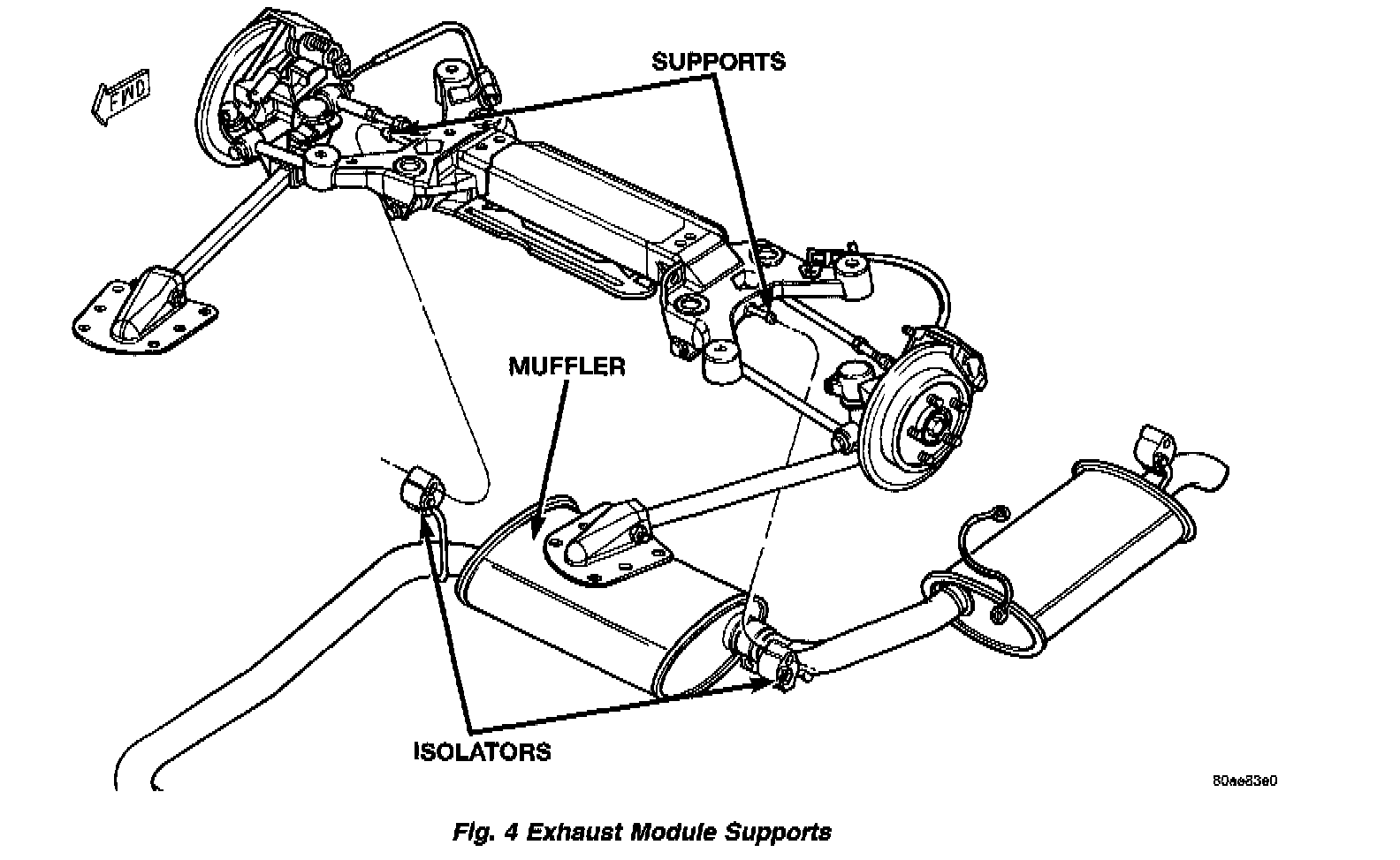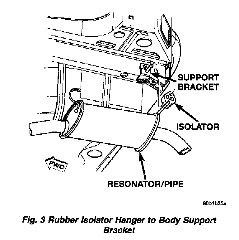 5. Visually inspect the isolators. They should be straight when viewing from front to back of the vehicle. Working from the front of system, align each component to maintain position and proper clearance with underbody parts.