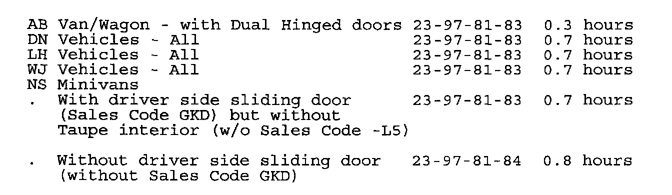 ^ Entering the VIN into the DIAL VIP System (sales code information) along with the table (all dealers) shown.