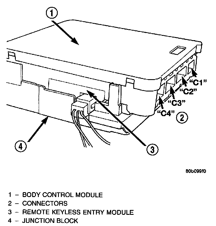 RKE Antenna Connector, Connectors C4,C3,C2,C1:
