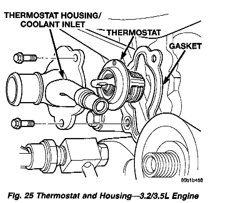 2. Install thermostat and gasket into thermostat housing. For ease of installation, install bolts in housing for thermostat and gasket retention.