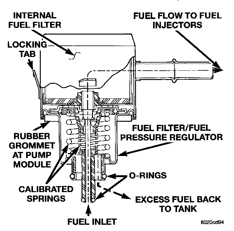 Fuel filter and fuel pressure regulator is located on the top of the fuel pump module.