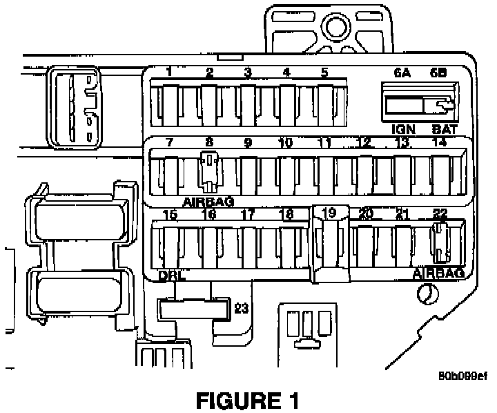 The power feed to the cigar lighter/power outlet can be HOT (1 2v - B+) only with the ignition "ON" or HOT (12v - B+) all the time depending on customer preference. To change the operating mode of the cigar lighter/power outlet remove the left side instrument panel end cap to gain access to the junction block (fuse panel). Remove and insert fuse # 6 (upper right of junction block) into the "BAT" or "IGN" location depending on preference (Figure 1, fuse shown in "IGN" position).