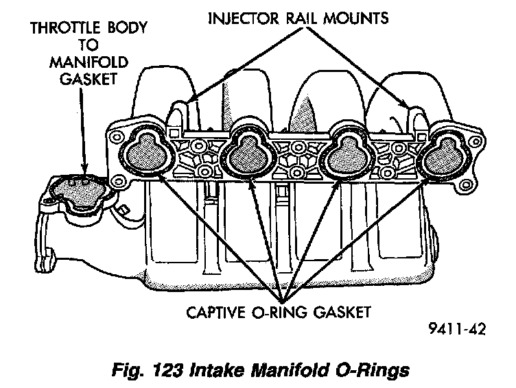 Check for torn or missing O-rings at the mating surface of the manifold (Fig. 123).