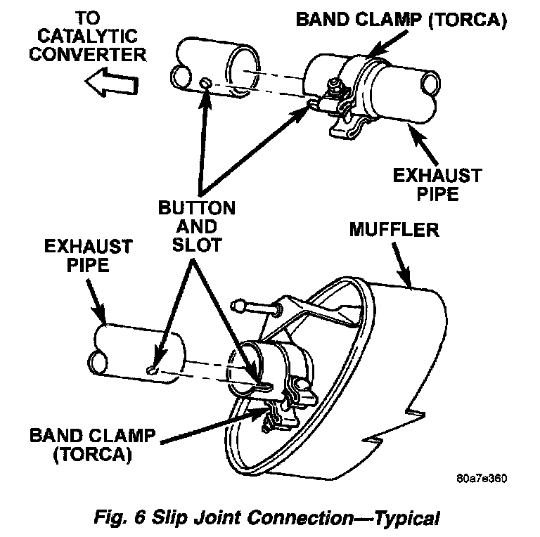 4. Loosen band clamp at the catalytic converter to exhaust pipe slip joint. Separate at slip joint.