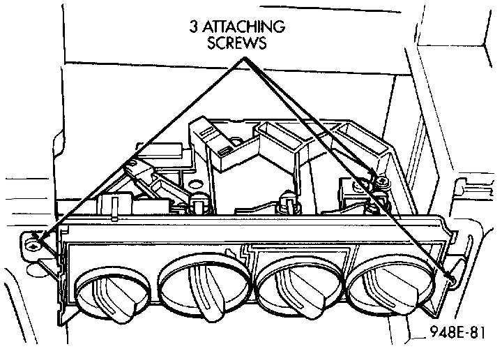 9. Remove three attaching screws at corners of the control , two front retaining and one retaining from the top rear.