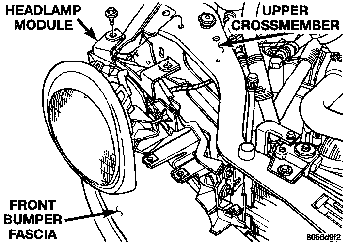 2. From behind bumper fascia, remove bolt holding outboard end of module to fender and closure panel.