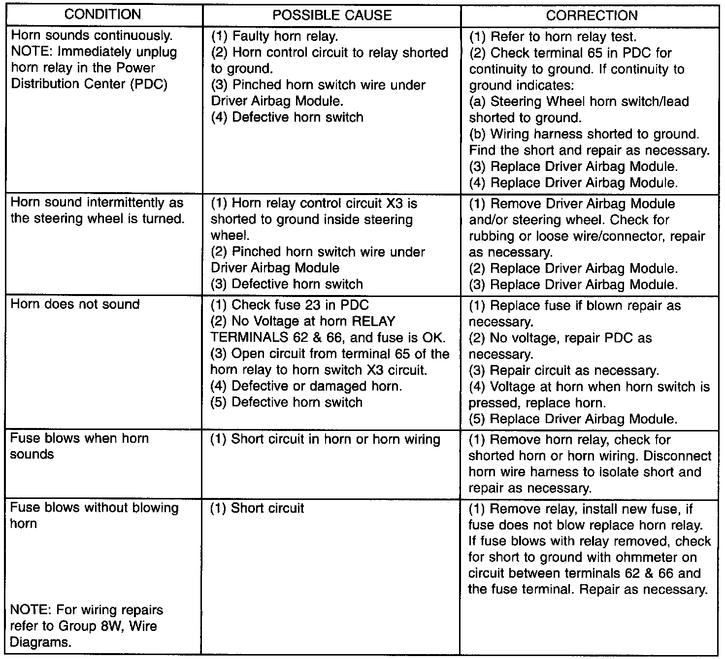 Horn System Chart