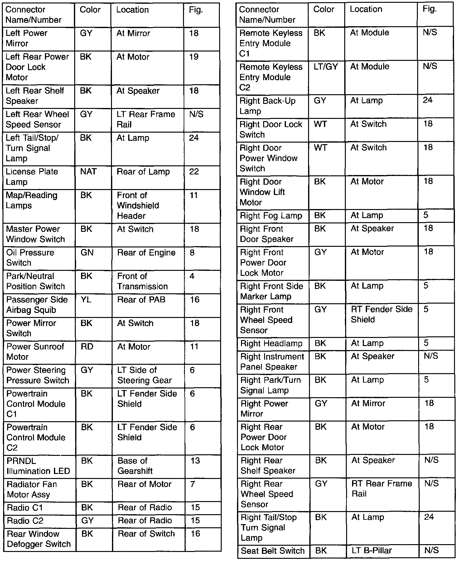 Connector & Ground Locations Index