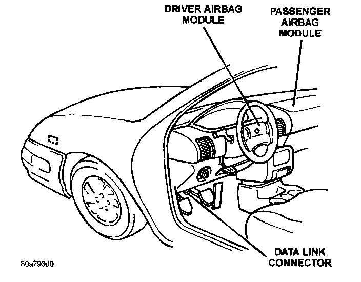 Driver Airbag Module, Passenger Airbag Module, Data Link Connector: