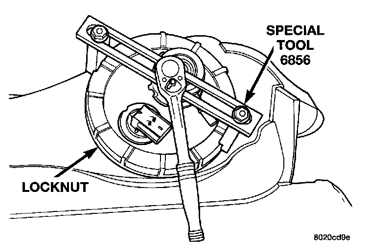 4. Tighten the locknut using Special Tool 6856 to 55 N.m (40.5 ft. lbs.).