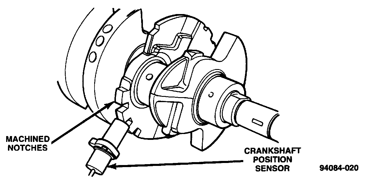 The PCM determines what cylinder to fire from the crankshaft position sensor input and the camshaft position sensor input. The second crankshaft counterweight has machined into it two sets of four timing reference notches including a 60 degree signature notch. From the crankshaft position sensor input the PCM determines engine speed and crankshaft angle (position).