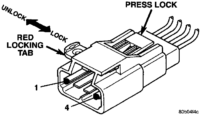 6. Lift module up until the wire connector is visible and disconnect the 4-way wire connector from module. Unlock the red locking tab and compress lock to release the connector.