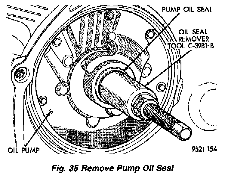 1. Screw seal remover Tool C-3981-B into seal (Fig. 35), then tighten screw portion of tool to withdraw the seal.