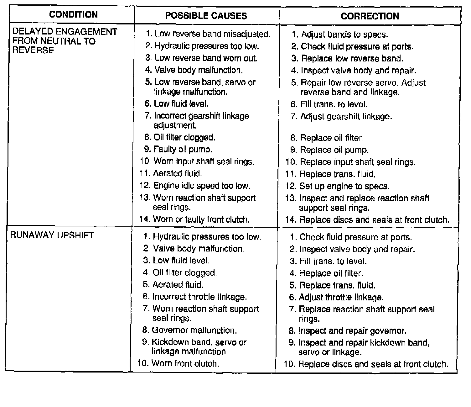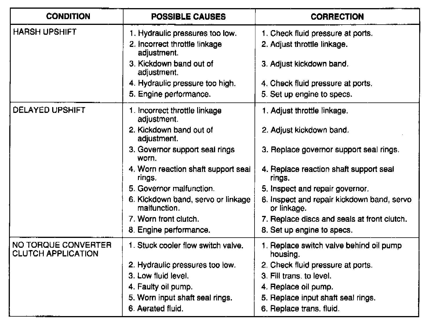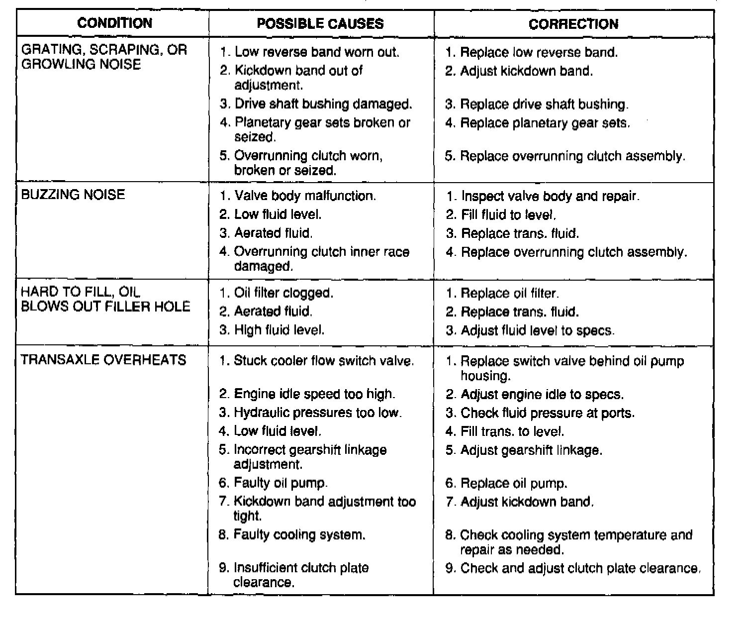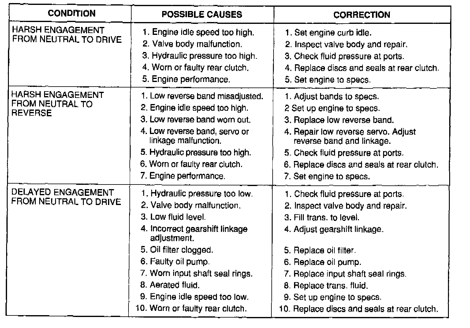 The charts should be used to help diagnose hydraulic or mechanical faults in the transaxle.