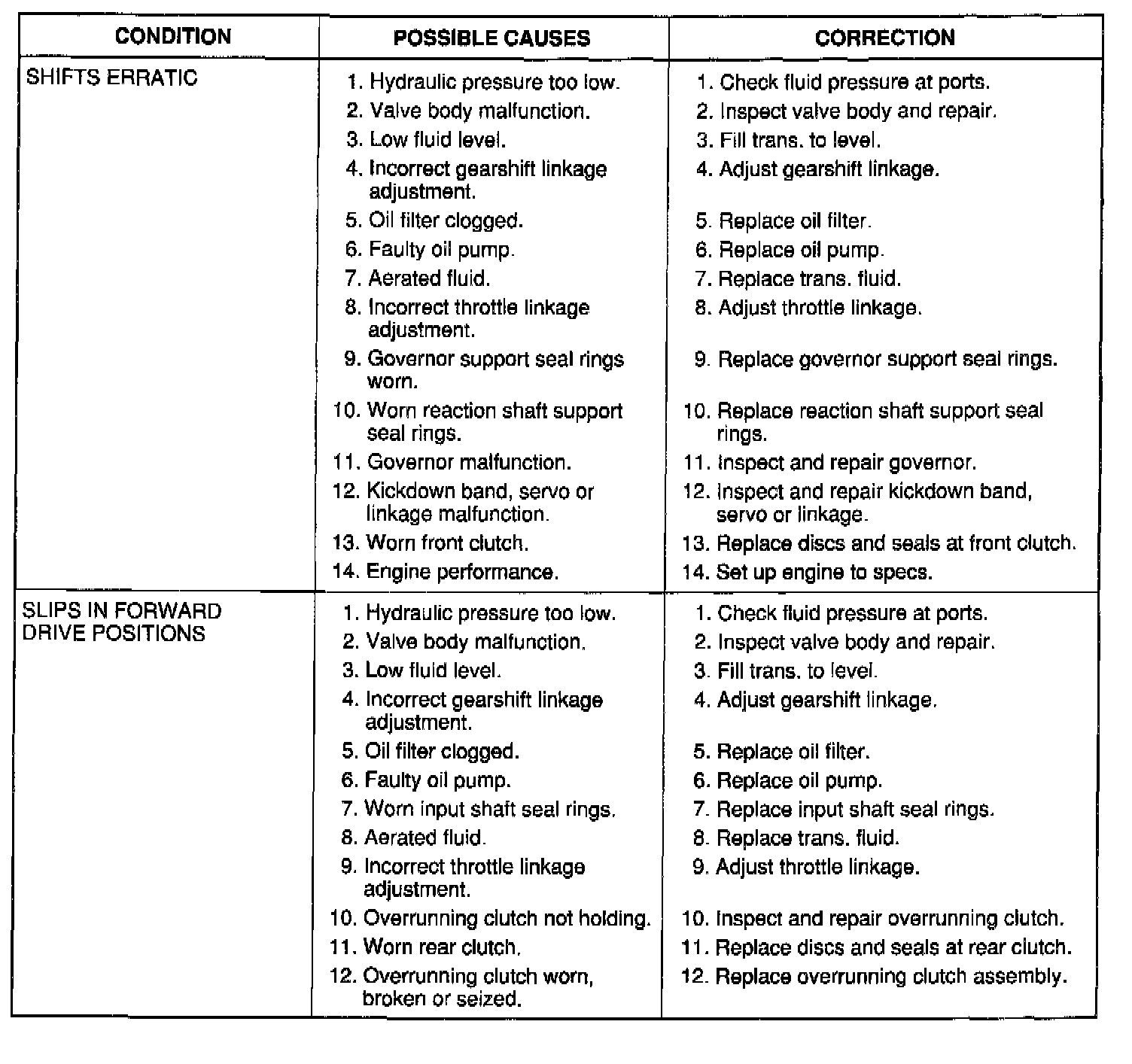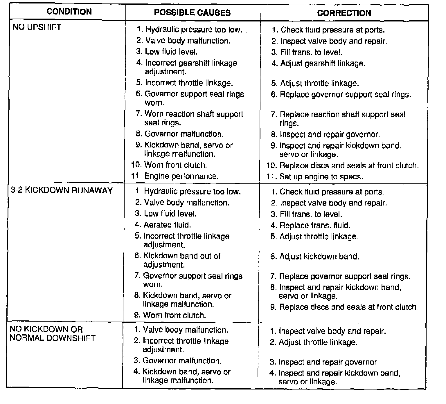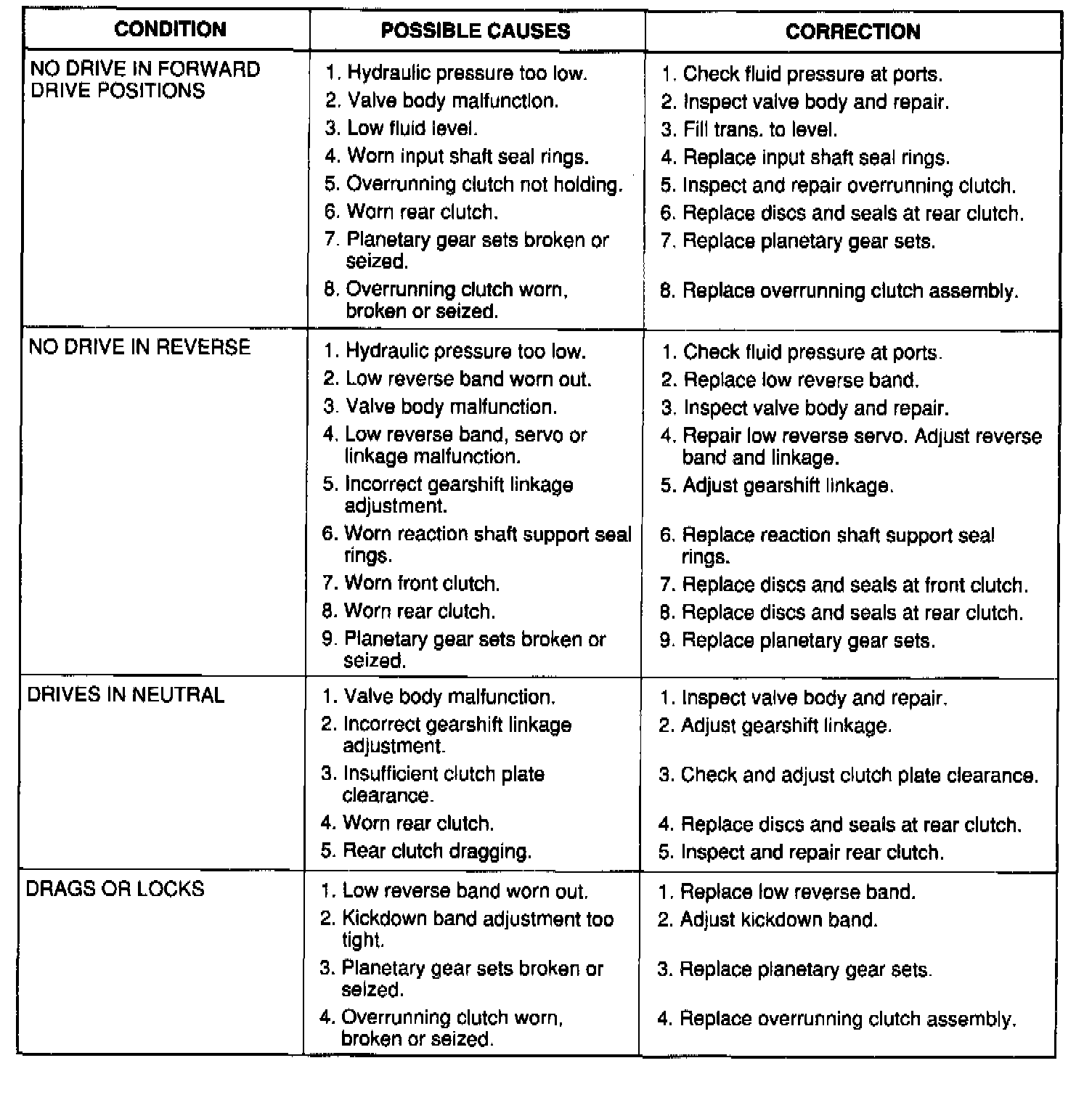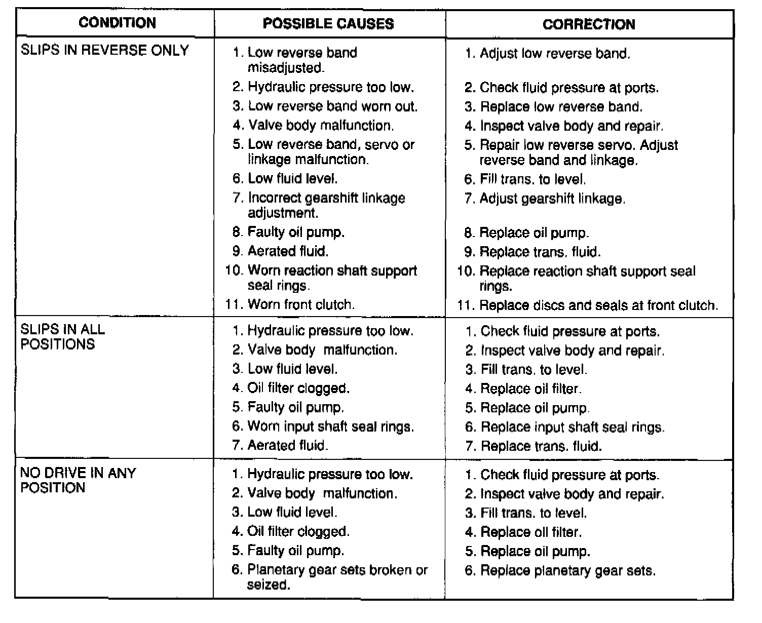 The charts should be used to help diagnose hydraulic or mechanical faults in the transaxle.