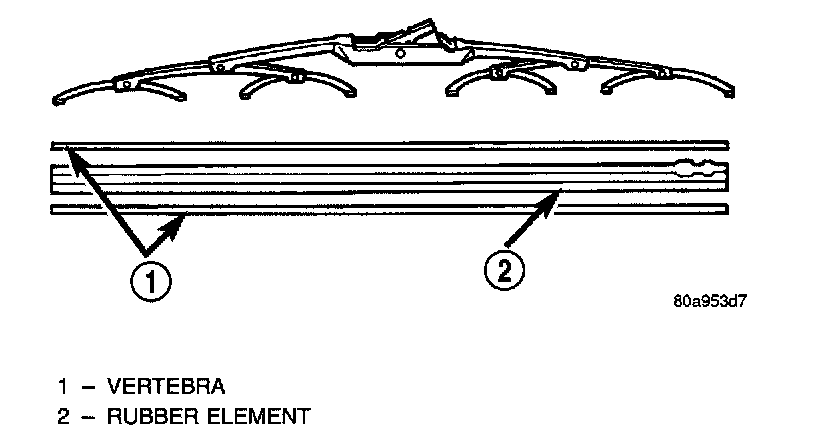 3. Remove wiping element from blade assembly. Pull stopper, of the rubber element, out of the end claw together with vertebra (metal rails).