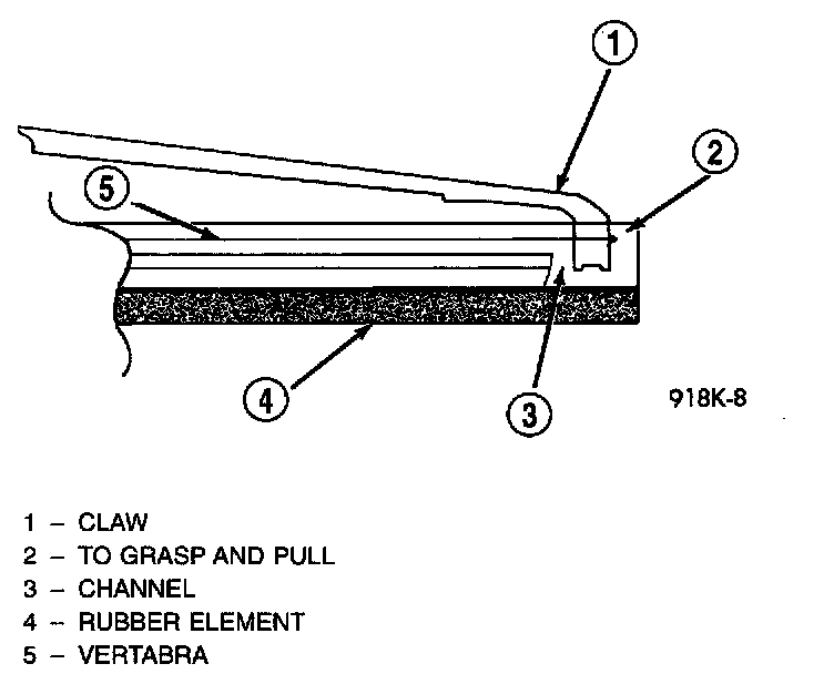 - For installation reverse the above procedures. Check that the element and vertebra are through all claws and the final claw is locked in the stopper.