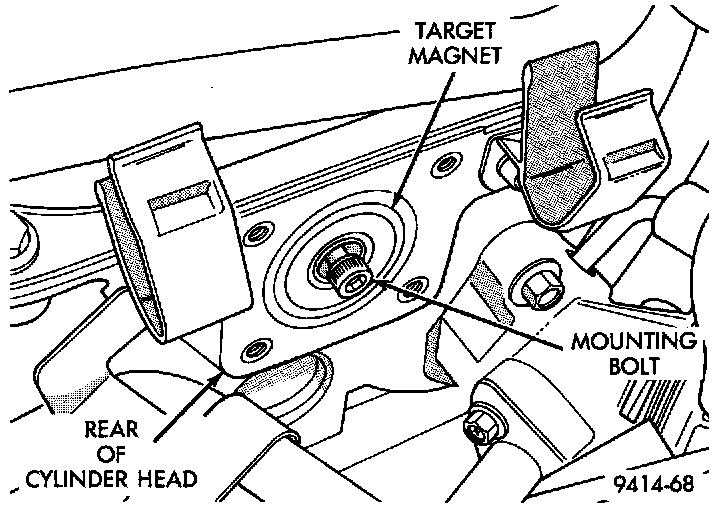 1. Install target magnet in end of camshaft. Tighten mounting screw to 3.4 N.m (30 in. lbs.) torque.