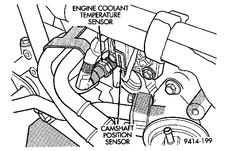 The engine coolant temperature sensor threads into the rear of the cylinder head.