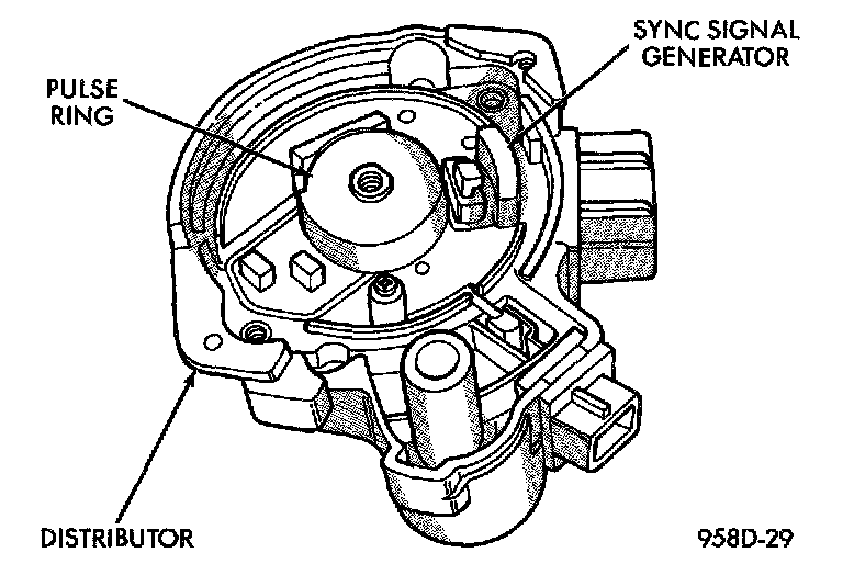 The 2.5L engine is equipped with a camshaft driven mechanical distributor. The distributor is also equipped with an internal camshaft position (fuel sync) sensor.