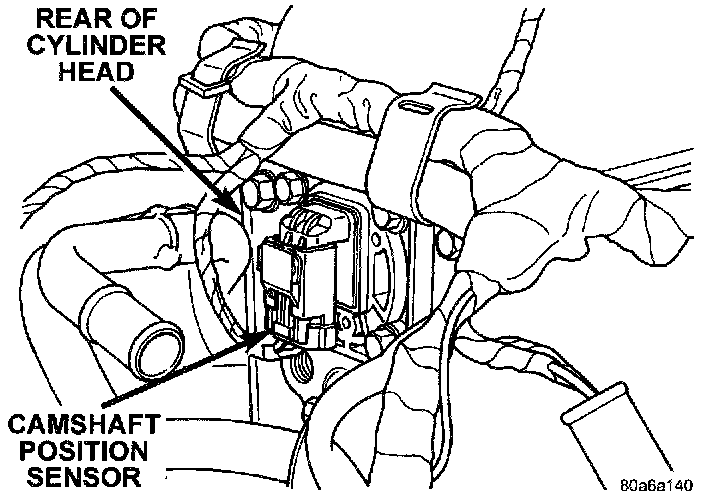 The camshaft position sensor is mounted to the rear of the cylinder head, The sensor also acts as a thrust plate to control camshaft endplay.