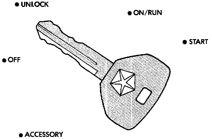 The ignition key rotates the cylinder to 5 different detents: