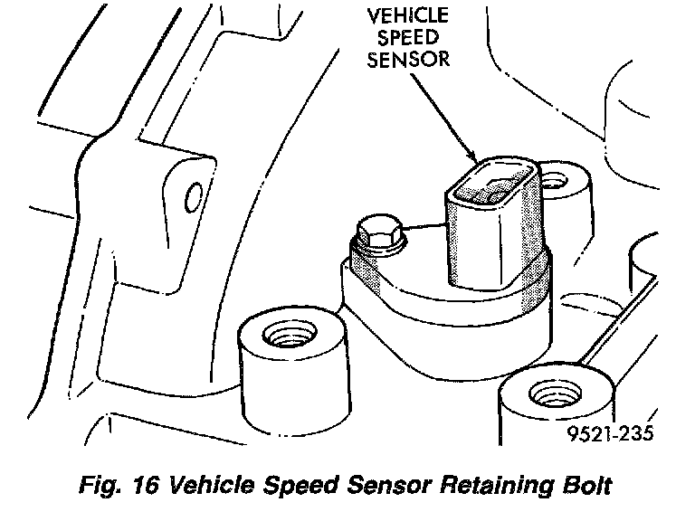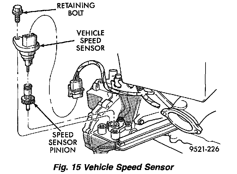CAUTION: Carefully remove vehicle speed sensor so that sensor drive gear does not fall into transaxle. Should sensor drive gear fall into the transaxle during sensor removal, drive gear must be reattached to sensor.