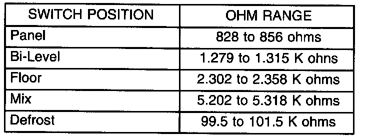 2. Using a ohmmeter, check leads between Pins 5 and 8 of the 8-Way connector. Turn the control module to each position shown on Control Module Test table. The resistance reading should be within the specifications shown. If not OK, replace the control module. If OK, check: