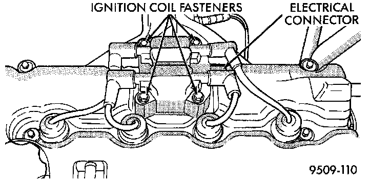 2. Transfer spark plug cables to new coil pack. The coil pack towers are numbered with the cylinder identification. Be sure the ignition cables snap onto the towers.