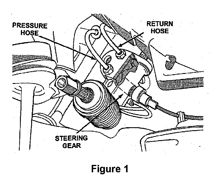 4. Using an 18 mm line wrench, disconnect the pressure hose at the steering gear housing (Figure 1).