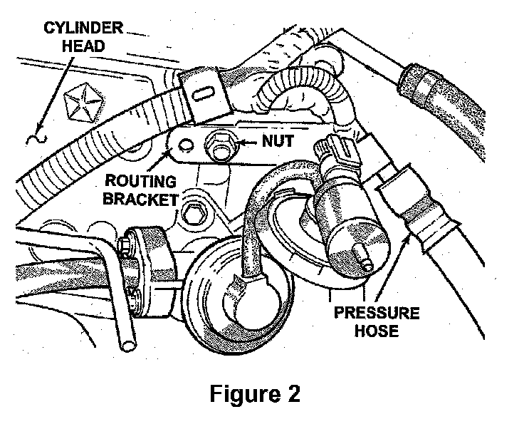 20. Install the fasteners that hold the power steering pressure hose routing bracket to the engine cylinder head (Figure 2). Tighten the fasteners to 21 ft. lbs. (28 N.m).