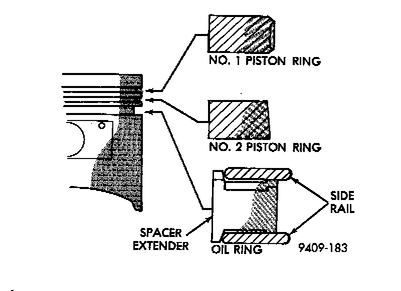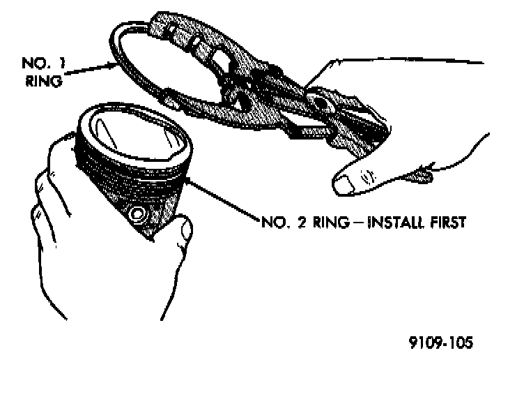 1. The No. 1 and No. 2 piston rings have a different cross section. Install rings with manufacturers mark and size mark facing up, to the top of the piston.