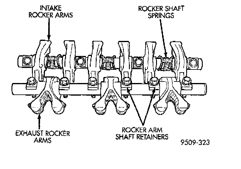 4. Loosen the attaching fasteners. Remove rocker arm shaft assemblies from cylinder head.