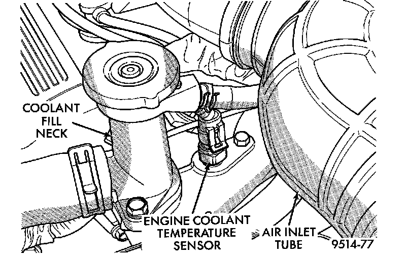 The engine coolant temperature sensor is located next to the fill neck.