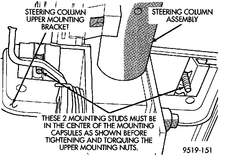 CAUTION: Be sure drill bits are removed from steering column upper mounting bracket.