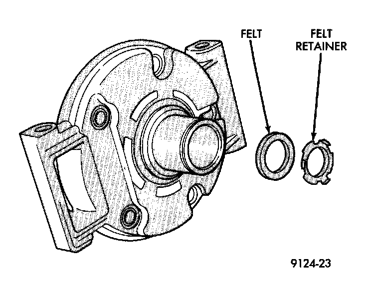 12. Install felt shaft seal and retainer into front housing.