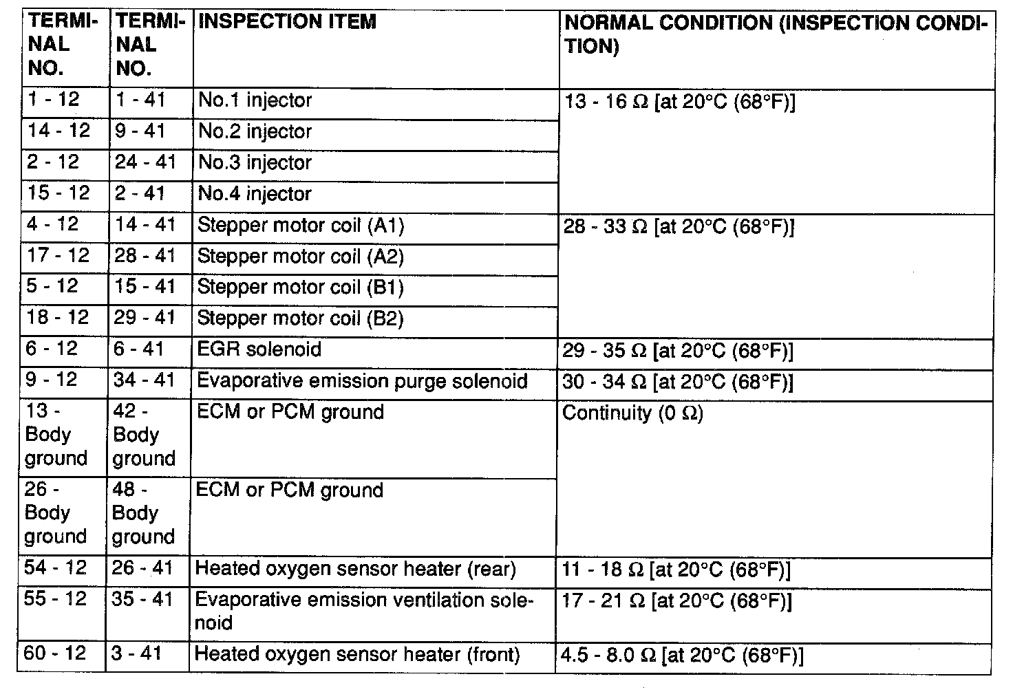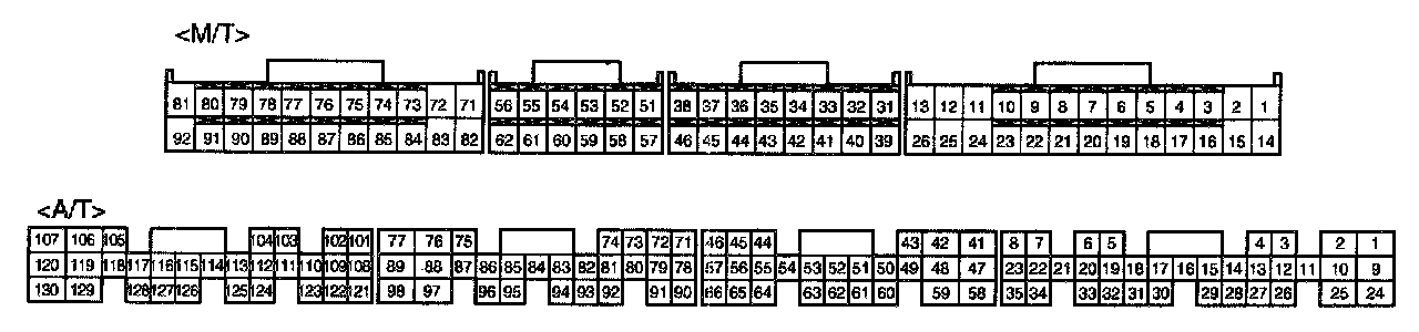 ECM <M/T> Or PCM <A/T> Connector Terminal Arrangement: