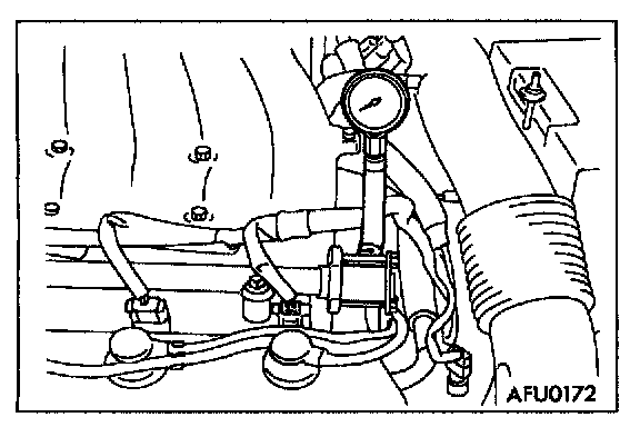 4. Install a fuel pressure gauge on the adapter hose that was set up in step 3.