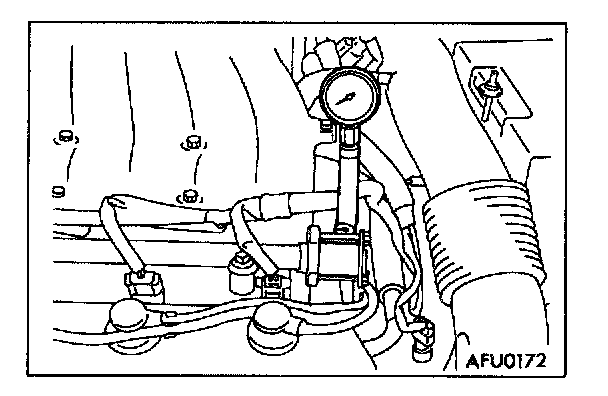 9. Race the engine several times. Check that fuel pressure at idle does not drop.