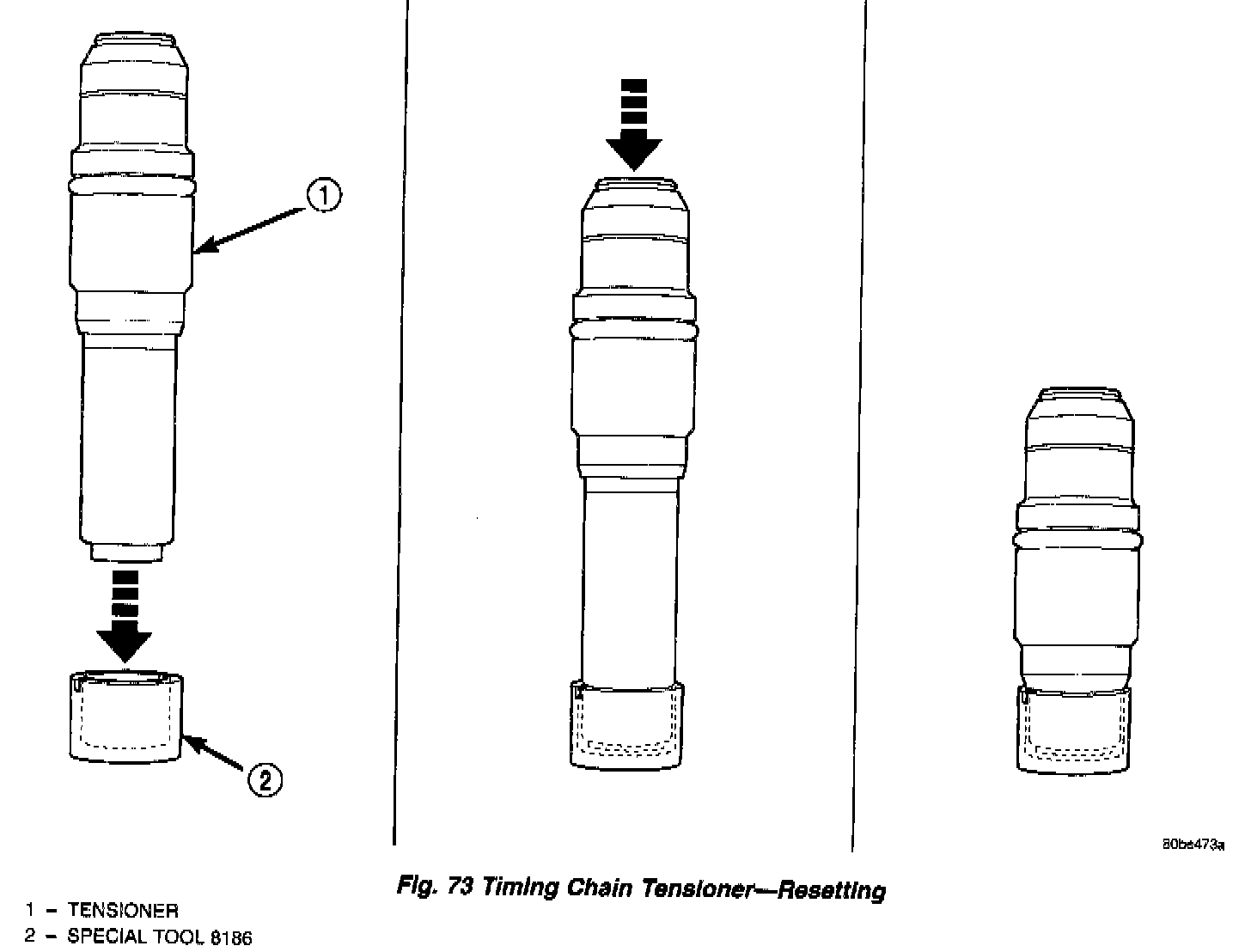 a. Place the check ball end of tensioner into the shallow end of Special Tool 8186 (Fig. 72).
