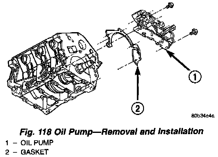 8. Remove oil pump fasteners. Remove pump and gasket from engine (Fig. 118).