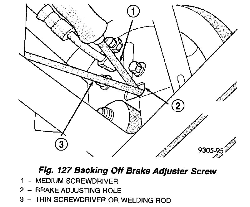 NOTE: In the event the brake shoes are over-adjusted, the adjuster can be backed off using the following step. If not, proceed to step 6.