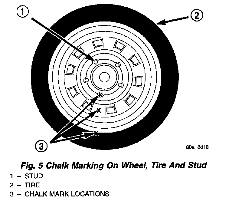 Check radial run out. If still excessive, mark tire sidewall, wheel, and stud at point of maximum run out and proceed to Method 2.