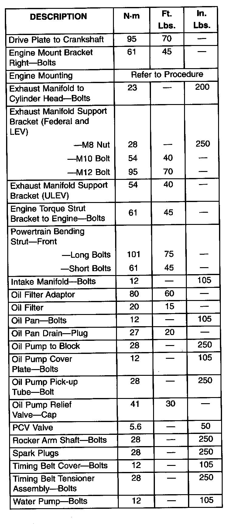 Torque Specifications