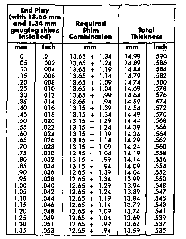 5. Once bearing end play has been determined, refer to the output shaft bearing shim chart.