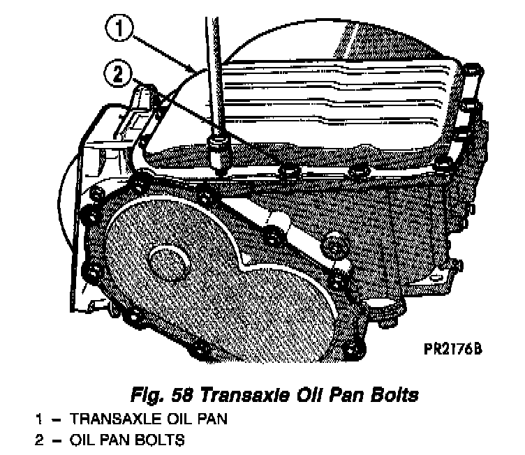 Put sealant on the oil pan flange (Fig. 59) and on all oil pan bolts (underside of bolt head).