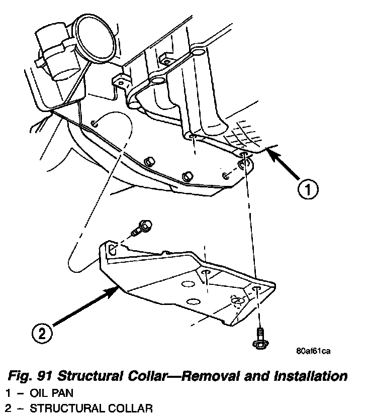 4. Remove structural collar from oil pan to transaxle (Fig. 91).